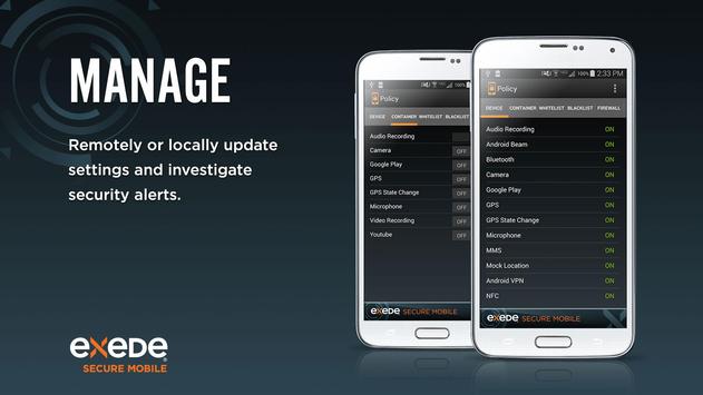 This app is part of the Exede Secure Mobile comprehensive approach to securing the mobile enterprise. It interfaces with existing security software and infrastructure so you have a consolidated and trusted view of your mobile enterprise security.
