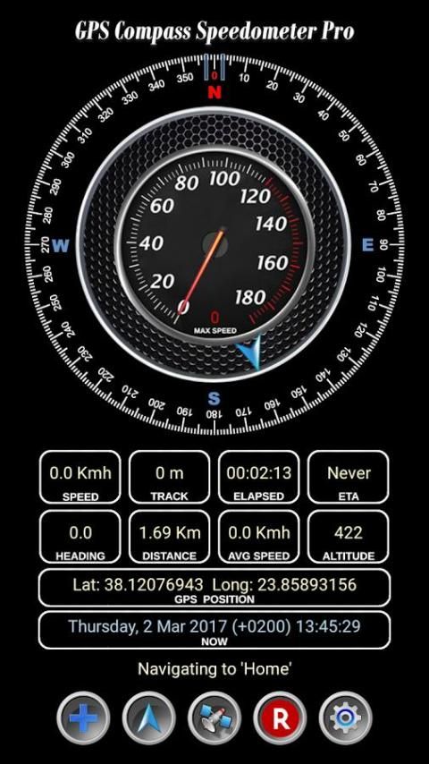 GPS Compass Speedometer Pro knows your heading, location, track distance, ETA etc. and can navigate you to saved waypoints easily.