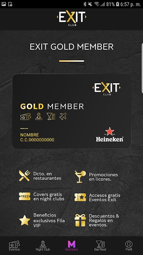 Tudo isto pode ser armazenado em seu perfil personalizado para resgatá-lo em cada estabelecimento / evento. Além disso, adquirindo sua associação de ouro, você pode obter outros benefícios exclusivos do Clube de Saída.