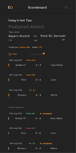 * user friendly interface (very easy to use, no ads, navigate trough free football tips and VIP soccer predictions easily)