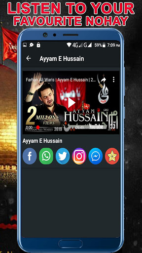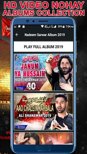Nohay 2020 is a wonderfull app that has been developed specially for muslims. You can easily watch all hits latest and old collection of Nohay videos. This app contain nohay, of all noha Khawan like Nadeem sarwar, Ali Jee, Ali Shanawar, Farhan Ali Waris, Irfan Haider, Ali Safdar, Mir Hasan Mir, Mesum Abbas, Zeeshan Haider, Shadman Raza and other top nohay khuwan singers. All Nohay Khuwan has there own Full Albums are availiable in this Nohay 2020 app and we can daily upload the latest Nohay Videos 2019 - 20. The spirit of Karbala has continuously been kept alive with the trasition of Azadari followed by Majlis , Matam Marsya and most prominently noha khwani.