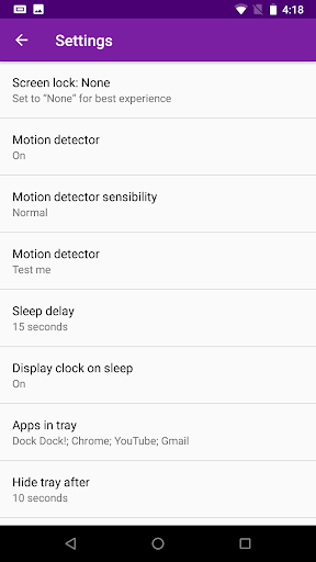 Android native system screensaver is very limited. So limited in fact, that no one uses it. Dock Dock! changes that by bringing simple yet extremelly powerful features to your Android device.