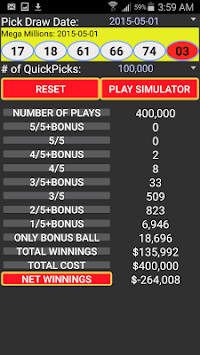 Get the latest Powerball and Mega Millions winning numbers. No ads. The numbers are pulled directly from the New York State Lottery. Winning numbers from the past 3 months are also provided. As an entertainment, users can play simulated Powerball or Mega Millions lotteries based on the actual winning numbers from the past 3 months. Wi-Fi or cellular data connection is required to download the winning numbers.