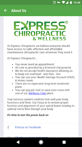 Express Chiropractic is an app designed to enhance the overall customer experience for our practice members. With the Express Chiropractic app you will be able to: