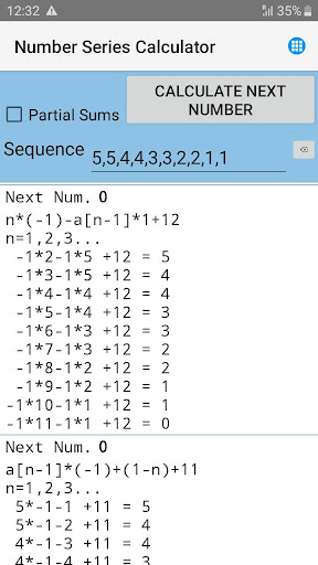 Number Series Calculator can use custom formulas to calculate the next and missing numbers in the number sequences.