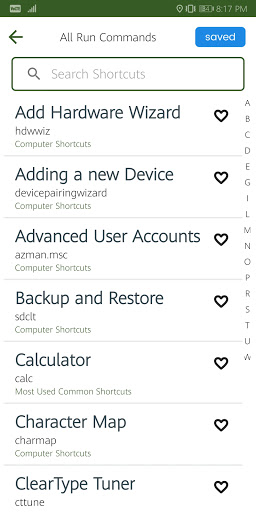 You can add a shortcut to favorites. App has Shortcut keys of MS Word and Shortcut keys for tally. This App is an offline App.