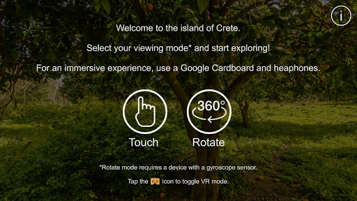 The app has 2 viewing modes: Touch and Rotate. The latter requires a device with a gyroscope sensor.