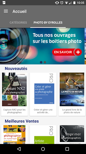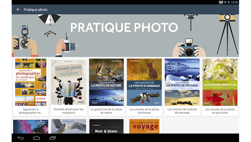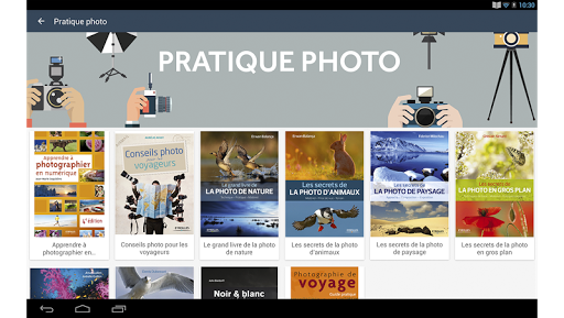 Compatible avec une très grande majorité de smartphones et tablettes sous Android, l'application vous permettra de suivre toutes les sorties à venir, que vous soyez un professionnel de la photographie ou un simple amateur. En plus d'un contenu proposé gratuitement en téléchargement, il est possible de prévisualiser tous les ebooks disponibles dans l'application.