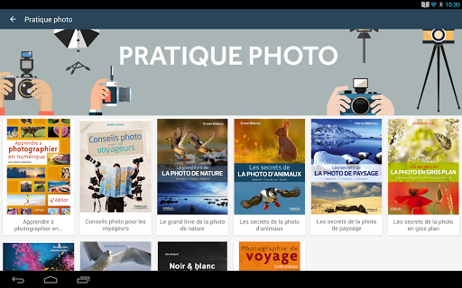 "La photographie by Eyrolles" est une application permettant de lire de très nombreux livres numériques enrichis dédiés à l'univers de la photo. Bien plus qu'une simple application de lecture d'ebooks, elle propose notamment une lecture guidée, différentes formes de zoom dans les contenus et images, et une navigation simple et intuitive.