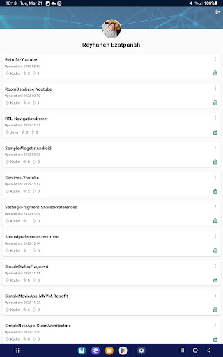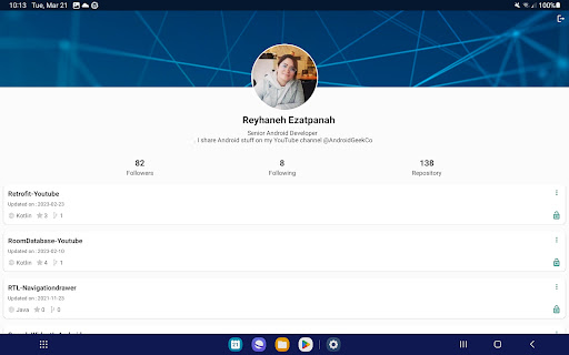 You can access directly into your repo and also you can share your public repo with other via this application. You can see your totals repo number ,Followers and Following.