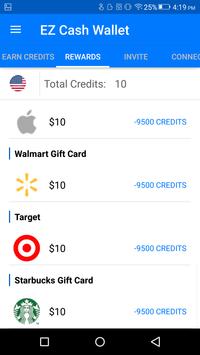 Use EZ Cash to earn EZ Cash Credits and redeem them for cash and free gift cards of your choice! It's easy to earn credits and get rewarded for your by Trying Free Apps, Watching Video Ads, Completing Surveys, Inviting Your Friends, and Logging In Everyday.
