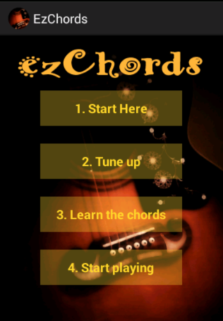 EzChords is an app to help you learn your favourite songs with the easiest chords possible on the guitar. The main aim of the app is for beginners to be able to play their favourite songs with easy 3 finger chords. No theory just learn the chords that are shown in diagrams on the app and start playing!.