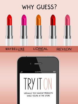 TryItOn is a revolutionary makeup app that allows you to virtually try on real beauty products like never before. Using top of the line technology, TryItOn turns your phone into a virtual tester, allowing you to accurately try on actual beauty products while you browse the cosmetic aisle. The next time you're out shopping, we invite you to spot any cosmetic product, upload a photo of your face, scan the product's barcode and see exactly how it would look on YOU. TryItOn is so smart; it is able to analyze skin pigments so that shades are accurately portrayed according to your exact skin tone. Can't decide between two killer shades? Use our share feature to ask for another opinion or show off your new buys.