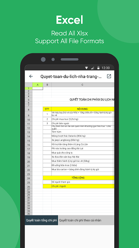 • You can view documents in format like xlsx, csv, bat, log, txt, potx, pptx, dps, asp, cmd, epub, html. H, asm, lrc, et, ett, pdf, ppt, docx, wpt etc as it is all doc & pdf reader & viewer you can open document or easily view free excel files.