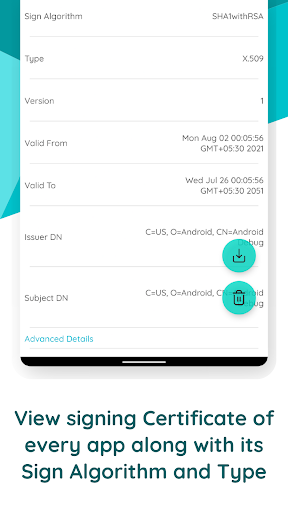 Find APK details from all installed apps, check their signing certificate and view additional details like Manifest file, Permissions used, and check their first install and last update dates