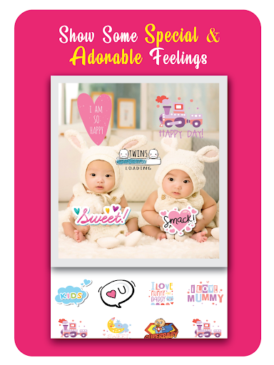 ♥ In baby pics app free Baby Photo Editor you can add the cutest baby stickers on photo!