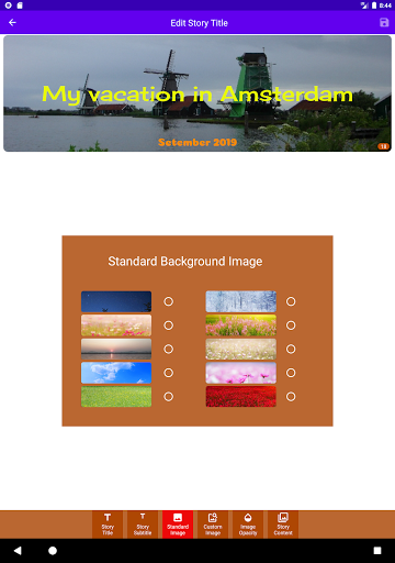 Set story title with different font and matching colour and with the background image from the standard images provided or with your own meaningful picture.