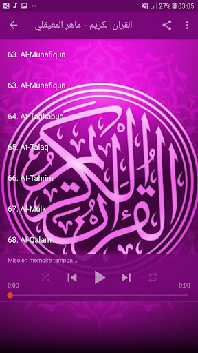 Listen To Quran karim MP3 recited by : Maher Al Meaqli This Application is free to use with internet connection