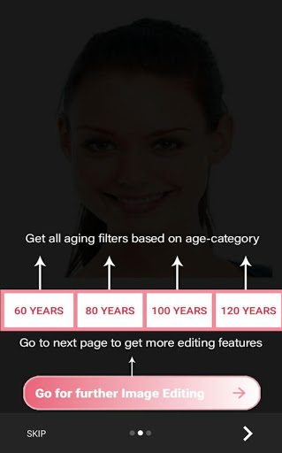 This application was made possible by intensive research into the effects of aging on skin wrinkles and color. The best results are when you take a photo while looking straight into the camera.