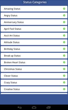 Categories right from Amazing, Angry, Anniversary, April Fool, Ascii Art, Attitude, Birthday, Break Up, Broken Heart, Christmas, Clever, Crazy, Creative, Crush, Cute, Daring, Decent, Emotional, Engagement, Exam, Flirt, Food, Friendship, Funny, Girls & Boys, Good Luck, Good Morning, Good Night, Hello, Insult, Kiss, Life, Love, Missing You, Motivational, Naughty, New Year, Nice, Relationships. Romantic, Rude, Sad & So on are available in this app.