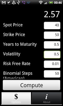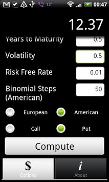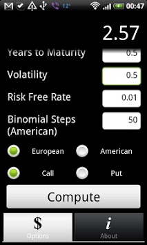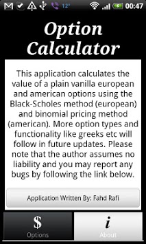 This application calculates the value of a plain vanilla options using the black-scholes and binomial pricing methods.