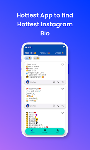 Filter by Gender: Read only what you need. Gender-based filtering helps a boy find attitude insta bio, and a girl can easily find some cute girly Instagram bios.