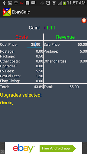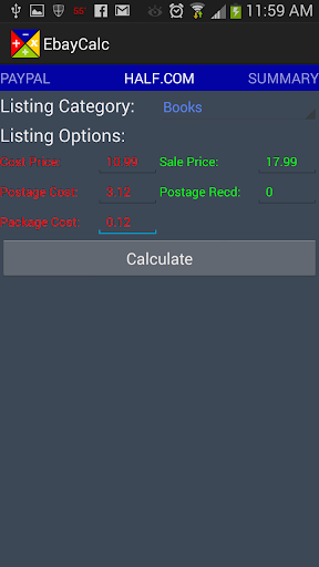 Ebay Calculator (Free) is an eBay calculator, PayPal calculator and half.com calculator.