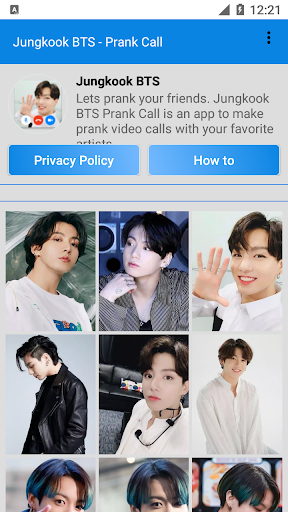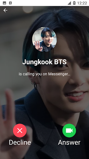 With this application you can prank your friends as if you were on the phone of your favorite artist, Jungkook BTS. Your friends must think that you have Jungkook BTS's phone number. You can also show off with your friends by taking screenshots during a video call and then share it on your social media such as Facebook, Instagram, WhatsApp, Twitter and others.