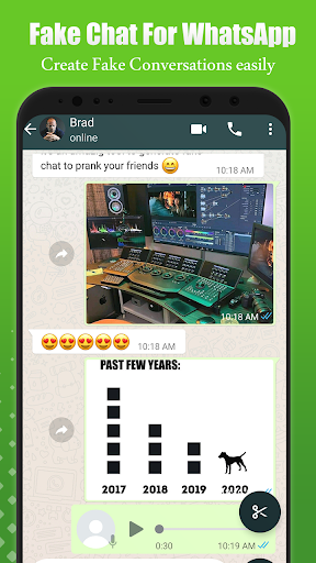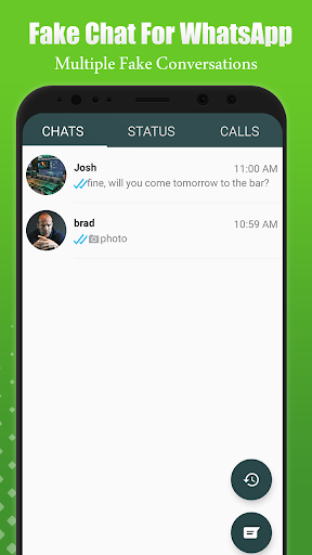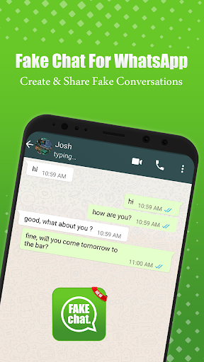 Fake Chat lets you create realistic mocks of chat conversations and share it with your friends. Create Whats Prank contacts and conversation and have fun with your friends and family.