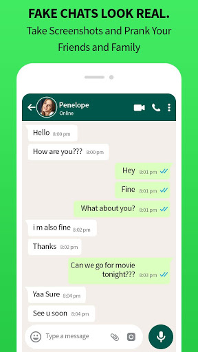 "Fake Chat app - Whats fake Chat Conversation" app allows you to generate chat conversations and share them with friends and family.