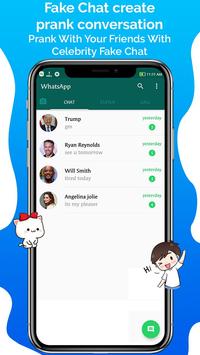 Fake Chat lets you create realistic mocks of chat conversations and share it with your friends. Create Whats Prank contacts and conversation and have fun with your friends and family.