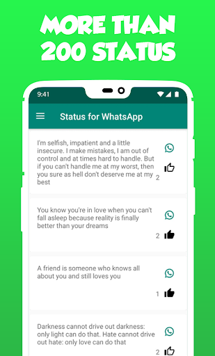 in one of the largest collections, this is, without a doubt, the most recommendable application to download. 📲 Discover the best phrases of love, life, birthdays, movies, reflections, sad phrases, hate, dislikes ... We have worked very hard to collect all the phrases and states coolest to put in your favorite social network as well as in your most used instant messaging application.
