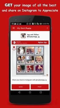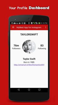 MyBest App is an app to discover your best for Instagram, not only helps you to find out your best Instagram posts but also your best followers, so you can figure out who gave most likes to your post. MyBest App came out with another features too. It sorted in categories. So instead of knowing your best post and your best followers, you can also calculate the numbers of like you give to other user and you will know your best favorite users. If you have shared your memories through Instagram, MyBest App can calculate best most tagged user in your Instagram posts. You can also seeing users that haven't followed you yet, but frequently likes your posts in your best secret admirers. And MyBest App can show you who are your best new followers. All this feature in one app. Just one tap and you'll see what's going on in your Instagram. Enjoy!
