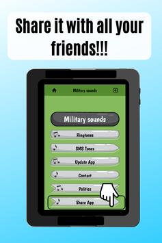It is already available in Play Store to download our new app Military sounds for cell phone free, enjoy our new app with Military ringtones already available (use them as ringtones, SMS, alarm or notification) and have fun with these amazing sounds. Download it right now and enjoy all the content.
