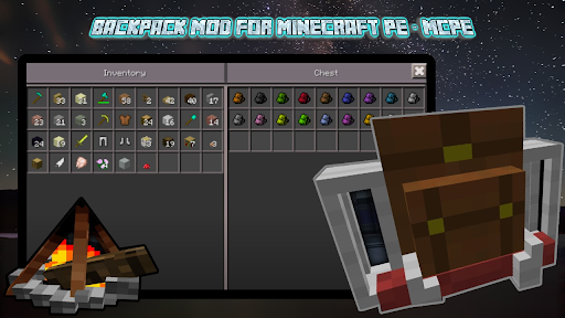 Disclaimer: BackPack Mod for MCPE is an unofficial application for Minecraft. This app is not affiliated with Mojang AB, the Minecraft name, the Minecraft brand, and all Minecraft property belongs to Mojang AB or its respective owners. According to http://account.mojang.com/documents/brand_guidelines
