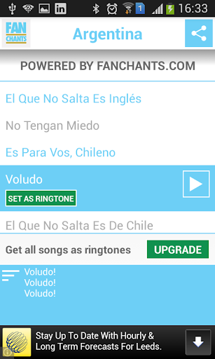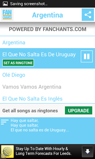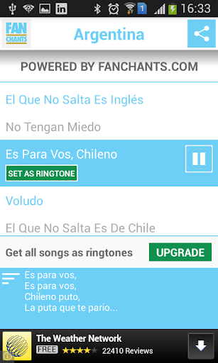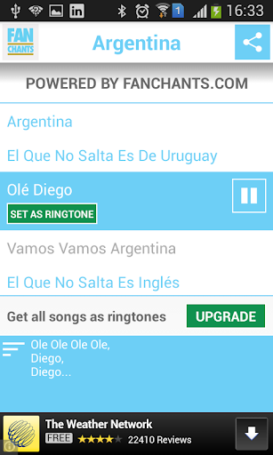 A must-have song and ringtone app for Argentina Football Supporters during World Cup 2014.