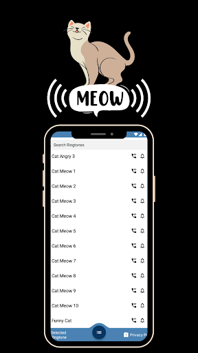 To use the Meowing Cat Ringtone application you can download then open this application and click the phone icon, bell or alarm icon to make a ringtone. If there is a ringtone that you like the most, you can tag it to be a favorite.