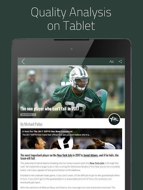 The Jet Press app is a one-stop shop for New York Jets fans, featuring breaking news, expert analysis and hot rumors about the Jets. Personalize your feed by picking and choosing the content you want, browse topics such as the NFL Draft or Free Agency, and stay up to date on the Jets with instant notifications sent right to your phone.
