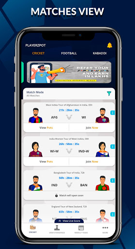 Fantasy cricket and PlayerzPot go hand in hand. The hand rules begin with forming a team with 11 players from a group of at least 25-30 players. Based on their performance of the 11 stars chosen, the user will get points accordingly grounded on runs, wickets, and catches compared to other players in the live match.