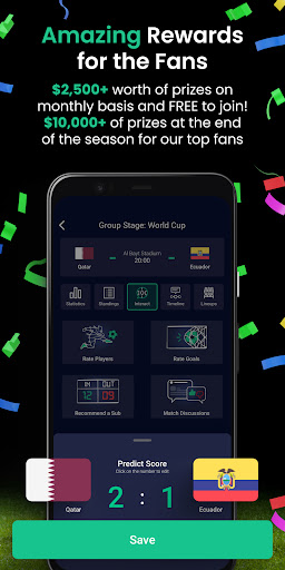 • Express your opinions by rating players and celebrating goals in every match.