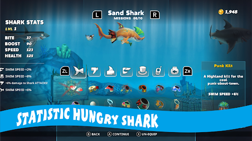 Once you have chosen the shark you want to play with, you will proceed to eat everything in front of you and make the blue sea reddish. Your objective is simply to survive and collect the highest possible high score as your health