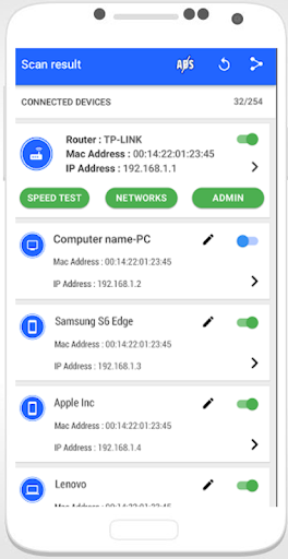Who Is in My WiFi, as the name suggests, allows you to see all the devices that are using your private network at the moment and make you in full control over your WiFi. Who is in my Wifi recognizes the IP address, mac address and many more about the your friends that are on your WiFi, and enables you to identify hackers and spies.