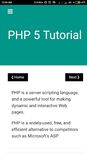 This Application provides an introduction to PHP, Ajax, XML and act as a Developer Guide for php programming and allows someone with a basic knowledge of programming to start creating Applications. It is a light course to cover fundamentals of Php.