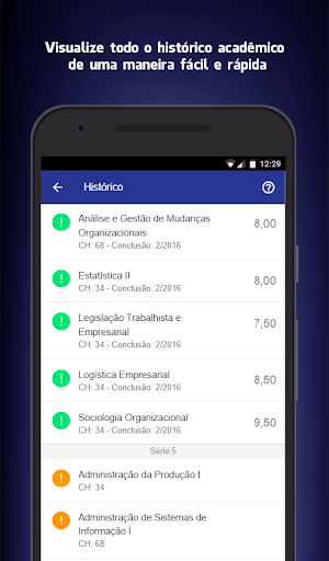 Com apenas poucos toques no smartphone ou tablet você terá as principais informações acadêmicas na palma da mão.