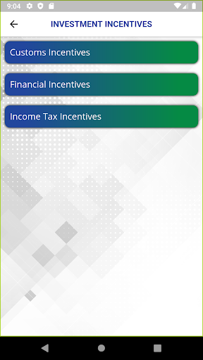 - investment Incentives like customs, financial and income tax incentives.