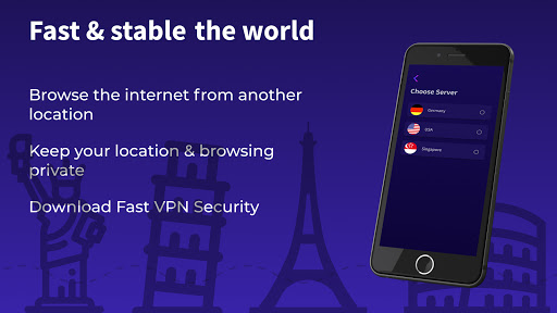 Fast VPN Security, encrypts your data and safely connects you to any web site or mobile app. Fast VPN Security, keeps you safe by directing your data traffic through our secure servers. Your personal IP address is hidden so that you are free to browse the internet without revealing your location to anyone without permission.