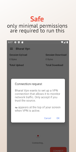 Bharat VPN cannot make online connections completely anonymous, but it can increase privacy and security. To prevent disclosure of private information, Bharat VPN allows only authenticated remote access using tunneling protocols and encryption techniques.