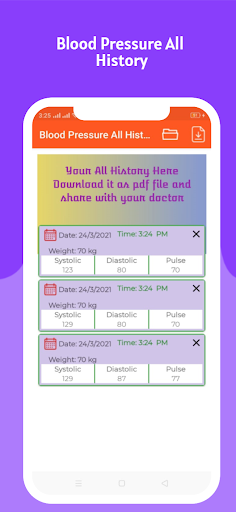 One of the most powerful features of Blood Pressure Diary is its reporting functionality. You can export your readings as PDF files and share them with your doctor or family members. This makes it easy to track your readings over time and provide your healthcare provider with accurate, up-to-date information.
