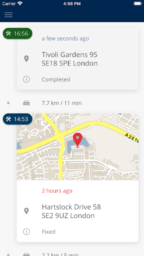 • Staff radar shows nearby engineers: If your engineers need assistance with a call, they can view the locations of other colleagues nearby