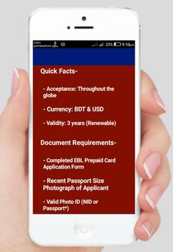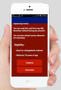 This will ensure more security, convenience and flexibility for making your everyday spending with a single card. One can buy it from any of EBL Branch which one will get instantly on depositing money. You can avail this card from any EBL Branches without having any account. You can also reload money whenever it's necessary.